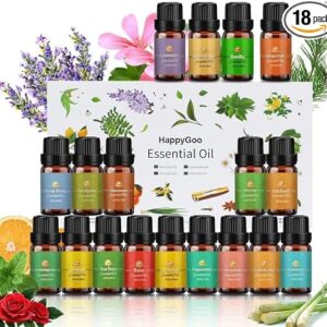 Ätherische Öle Set 18 x 10 ml, Teebaum, Lavendel, Eukalyptus, Weihrauch, Zitronengras, Rosmarin, Orange, Minze, Zitrone, Bergamotte, Ylang-Ylang, Grapefruit, Kamille, Rose, Vanille, Patchouli, Salbei