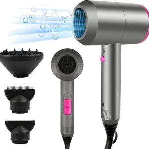 HappyGoo Hair Dryer Professional Ionic Hairdryer with 2 Speed 3 Heat Setting, Cool Shot Button, 1 Diffuser & 2 Concentrator, Hairdryers for Women & Man – Light Gray