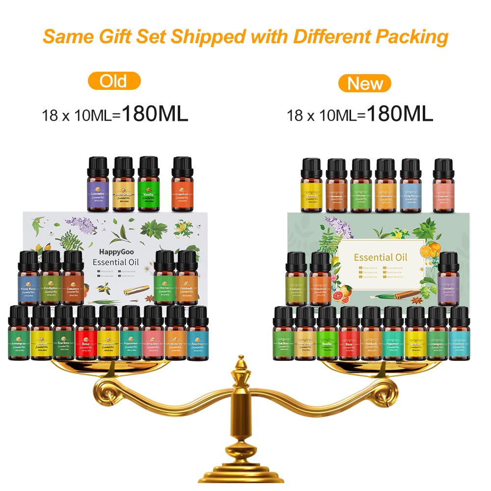 - 🌱【Exquisites ätherisches Öl-Set】 HappyGoo Aromatherapie-Set mit ätherischen Ölen enthält 18 Flaschen mit 10 ml der beliebtesten Öle, Teebaum, Lavendel, Eukalyptus, Weihrauch, Zitronengras, Rosmarin, Orange, Minze, Zitrone, Zimt, Bergamotte, Ylang-Ylang, Grapefruit, Kamille, Rose, Vanille, Patchouli, Salbei.